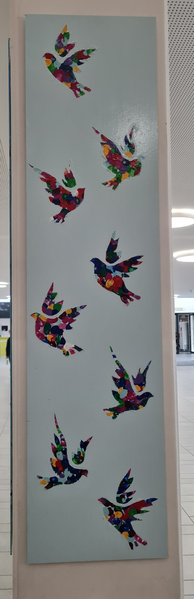 Wer in der letzten Zeit einmal durch die Aula unserer Schule gegangen ist, wird es schon bemerkt haben: unser gemeinsames Kunstprojekt ziert nun einen der Pfeiler in der Aula!