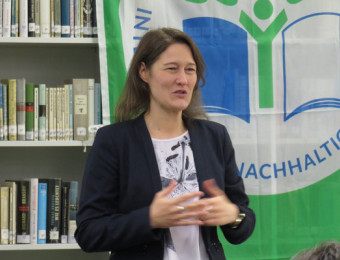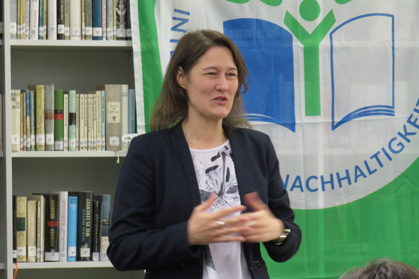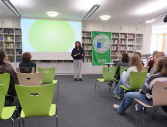 Die stellvertretende Schulleiterin Katharina Weber begrüßte die Gäste der SCHOTT AG, zahlreiche Schülerinnen und Schüler sowie Lehrkräfte in der Bibliothek der Schule und hob dabei hervor, dass Umweltschutz und Nachhaltigkeit durch zahlreiche Projekte im Schulleben der MINT-EC Schule fest etabliert sind. Bereits seit 18 Jahren ist die Schule auch als Umweltschule zertifiziert. Katharina Weber brachte ihre Freude zum Ausdruck, dass zwei innovative Projekte der Schule durch die SCHOTT AG nun besonders gewürdigt werden: