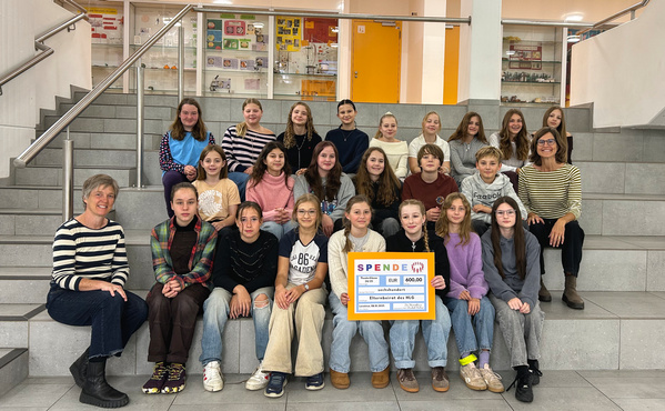 Frau Hübners Theaterklasse der letzten beiden Schuljahre (2023-2025) hat bei der Aufführung ihres Stückes „Werwölfe“ in diesem Frühjahr viele Spenden eingenommen. Die Schülerinnen und Schüler der ehemaligen Theaterklasse haben entschieden, dem Elternbeirat des HLG für seine Arbeit eine Summe von 600 Euro von diesen Einnahmen zu spenden. Michaela Leicht, die Vorsitzende des Elternbeirats, nahm diese begeistert entgegen und bedankte sich ganz herzlich im Namen des gesamten Elternbeirats.
