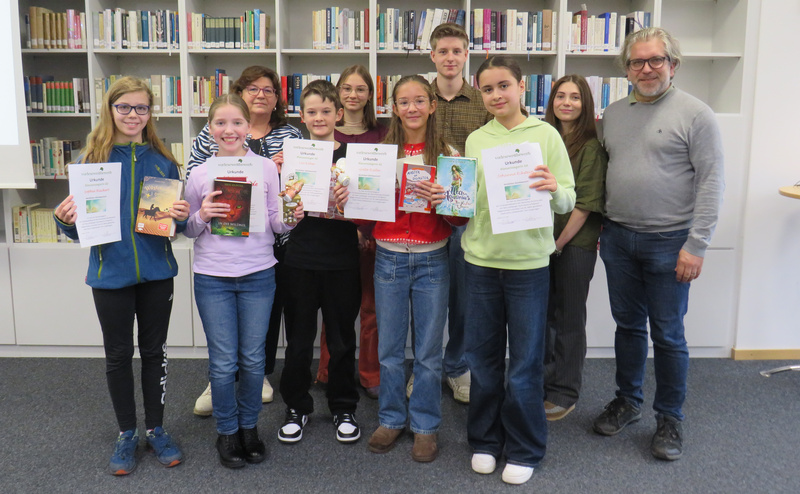 Am Donnerstag, 11.12.25, fanden sich die Schülerinnen und Schüler aller sechsten Klassen in der Bibliothek des Hans-Leinberger-Gymnasiums ein, um ihre Klassensieger im Schulentscheid des Vorlesewettbewerbs des Deutschen Buchhandels zu unterstützen, sei es durch kräftigen Applaus, Plakate oder gar Fangesänge.