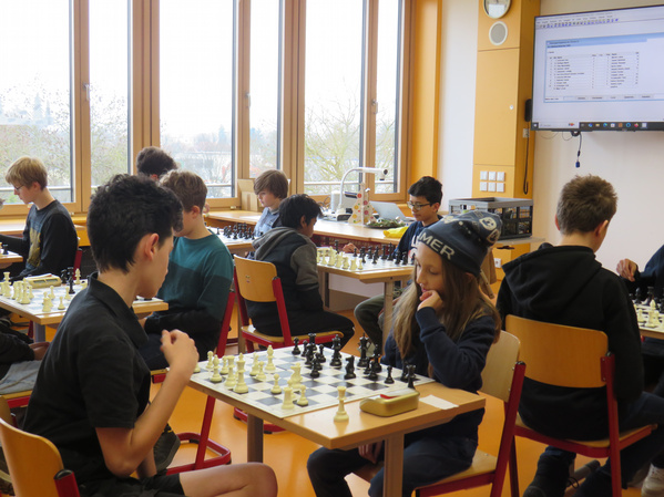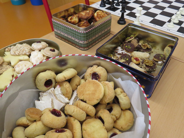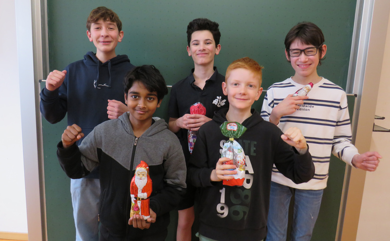 Zwischen den Runden konnten sich die Teilnehmer im Vorbereitungsraum mit Plätzchen stärken und analysierten die Partien nach. Für alle Teilnehmer spendierte der Förderverein als Preise Schokonikoläuse, die der Turnierleiter Prof. Mock nach drei Stunden voller spannender Partien überreichen konnte.