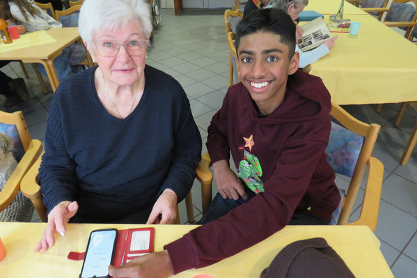 Zu Beginn stellten wir uns gegenseitig vor. Danach entstanden Gespräche, in denen die älteren Menschen viel über ihre Vergangenheit und ihre Jugend erzählten. Außerdem erklärten sie, welche Probleme sie mit ihren Geräten hatten. Anschließend halfen wir ihnen bei verschiedenen technischen Fragen, zum Beispiel beim Überprüfen des Speicherplatzes, bei Einstellungen oder bei der allgemeinen Bedienung.